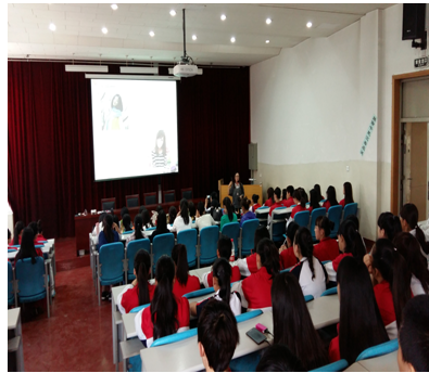 2015年5月20日下午,经济管理系与山西恒辉贸易有限公司联合举办了题为“塑造职业专属妆容 打通职场无畏通道”的专题讲座。参加本次讲座的有:教务科陈丽萍副科长、经济管理系全体教师、13恒辉班全体学生和各班学生干部。讲座由管理系李灵云老师主持,恒辉集团人力资源部培训师梁佳甜、CK品牌讲师智蔷主讲。