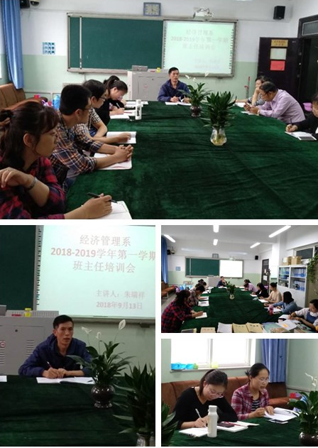 2018年9月13日下午,经济管理系在教学楼303召开了2018-2019学年第一学期的第一次班主任会议,会议由我系主任朱瑞祥老师主持,16、17、18级全体班主任参加了此次会议。