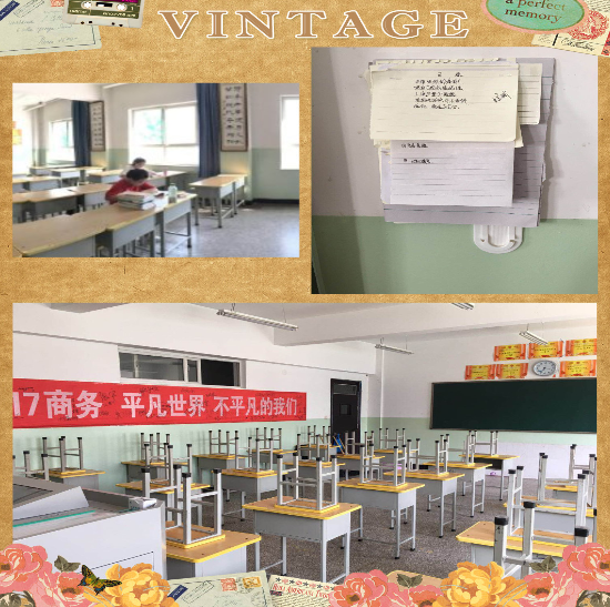 在检查教室卫生过程中,我们发现17会一班两名同学自发的在教室学习英语;17会三班张贴了学生公寓红旗宿舍评选后的个人总结与反思;17商务班教室整齐划一;17营销班将每一位学生新学期目标张贴在黑板旁,时时鞭策自己。