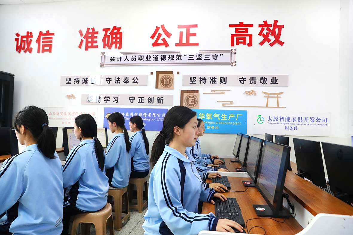 学校财经类专业始于1953年,积淀深厚,会计事务专业荣膺国家/省级示范、省级高水平骨干特色及“十四五”特色专业。师资团队精英荟萃,65%教师拥有研究生学历,含省级职教名师1人、校级名师1人,并特聘行业专家及企业工匠任教。实训体系完善,财税处理、沙盘模拟、直播电商等7大实训室构建产教科创融合的综合性财经实训基地,兼具人才培养、社会服务与创新孵化功能。教学资源优质,建成国家级精品课1门,师生屡获全省技能大赛一等奖。校企共建中联智慧产业学院,与浙江菁英电商园、山西穗华物流园等深度合作。学生发展多元,"3+2"考核通过率超98%,众多学子圆梦本科,实现就业有技能、升学有通道、发展有平台,彰显职教改革示范标杆实力。