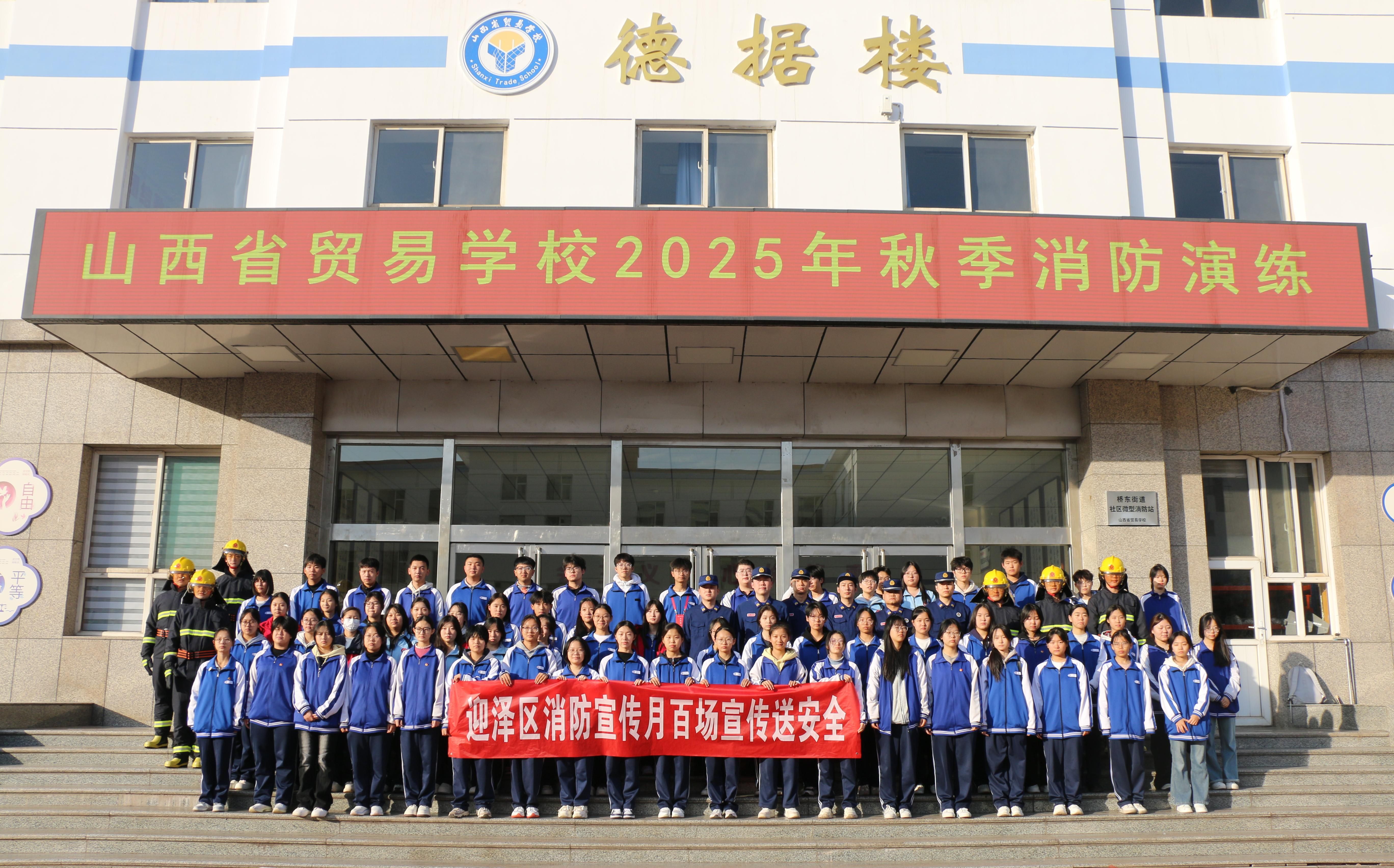 为全面提升师生消防安全意识和应急自救能力,2025年11月11日下午,我校联合迎泽区消防管理服务中心组织开展了秋季消防疏散演练。本次演练分警报发布、应急响应、集合清点、技能培训四部分,演练指挥部由副校长陈昌担任总指挥,迎泽区消防管理服务中心组长张帅、学保科科长马天翼任副总指挥,下设疏散引导、安全警戒、医疗救护、宣传报道等多个工作组,各司其职、协同配合,确保了演练的顺利推进。
