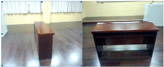1)、桌子材质为E1级中密度纤维板材,面贴0.6mm原木质胡桃木皮。