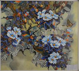 沥粉画《风一样的女子》 铜丝丙烯画《幽兰玉吟》