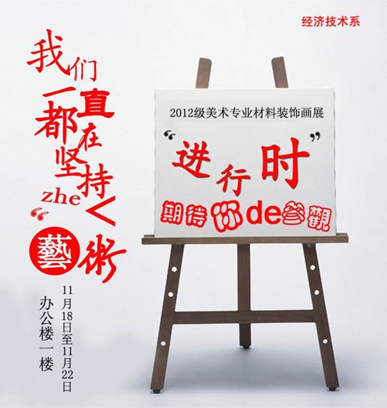 《材料装饰画》是一门非常有趣的课,同学们也非常喜欢,在肖征、李丽、潘文英三位老师的悉心教授下,经过2个月的刻苦创作,2012级设计一班、设计二班、美术三班的同学们制作出了许多优秀的作品。经济技术系特此于2013年11月18日至2013年11月22日在办公楼一楼展厅举办了一场材料装饰画展。在全校师生中引起广泛关注,得到一致好评。