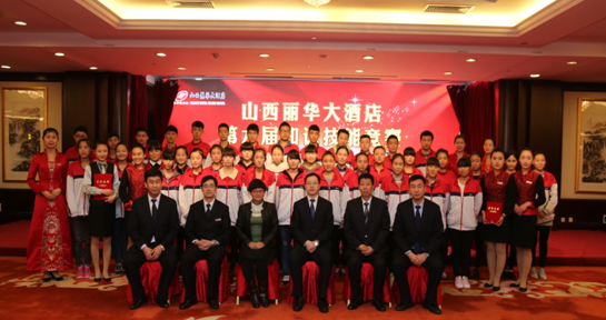 比赛结束之后,丽华大酒店总经理郭守俊及班子成员与我校师生亲切交谈并合影留念,酒店非常欢迎同学们到酒店实习和工作。