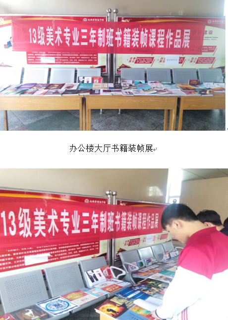经济技术系2013级“三年制”美术班书籍装帧展圆满结束。书籍装帧是美术专业一门非常重要的专业技能课,也是历届学生备受喜欢的课程,在任课老师的耐心指导下,经过学生们刻苦学习、精心练习,创造了许多优秀的作品,为此经济技术系专门举办了一次书籍装帧展。时间从2015年5月11日到2015年5月15日,地点在学校办公室一楼。