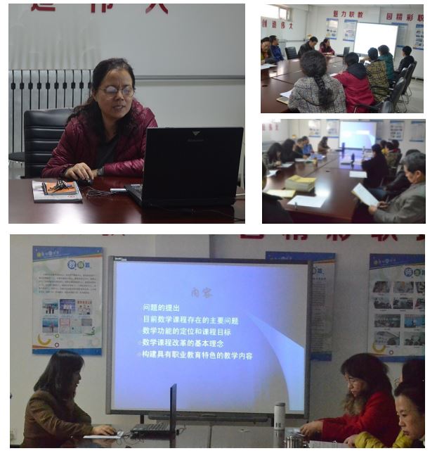 3月29日,计科系在实训楼办公室召开了主题为“构建具有中职特色的数学教学内容”教学研讨会,会议由吕艳燕老师主讲。主要分四个方面进行了讲解,从问题的提出、存在的问题、数学功能的定位和目标、构建具有中职特色的数学教学内容等逐层展开论述,强调教学内容定位要准,即遵循“以人为本、以能力为本”职教理念,要突出“针对性、实用性、应用性、现代性”,即从面向专业需求、降低理论要求、理论联系实际、引入数学软件体现四个特性,同时要兼顾基本文化知识,体现出基本文化素质教育特色,具体在教学内容处理上要把握好四化,即“公理化”、“现代化”、“浅显化”、“应用化”教学,达到培养学生计算能力及逻辑思维能力的目的。