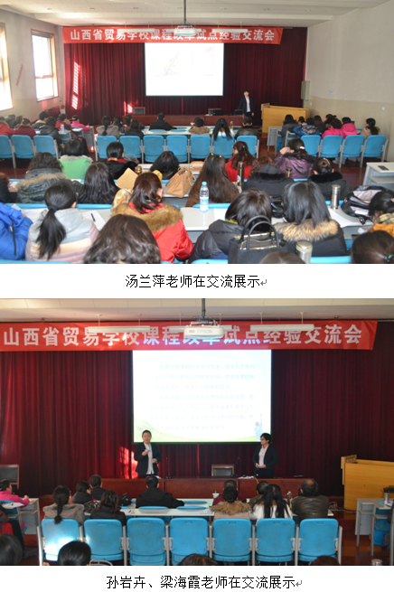 我校课程改革跟踪活动,期初确定了《英语》、《会计岗位实训》、《C语言》、《语文》作为改革试点课程,由系部主任负责、专业教研室组成教师团队,并且分别由尚瑛达副校长、教务科三位负责人跟踪指导。本次交流会由管理系汤兰萍老师、技术系孙岩卉老师、梁海霞老师、计科系温学明老师和基础部连成艳老师作为团队代表,在本次交流会上介绍了自己的课程改革情况,受到大家一致好评。