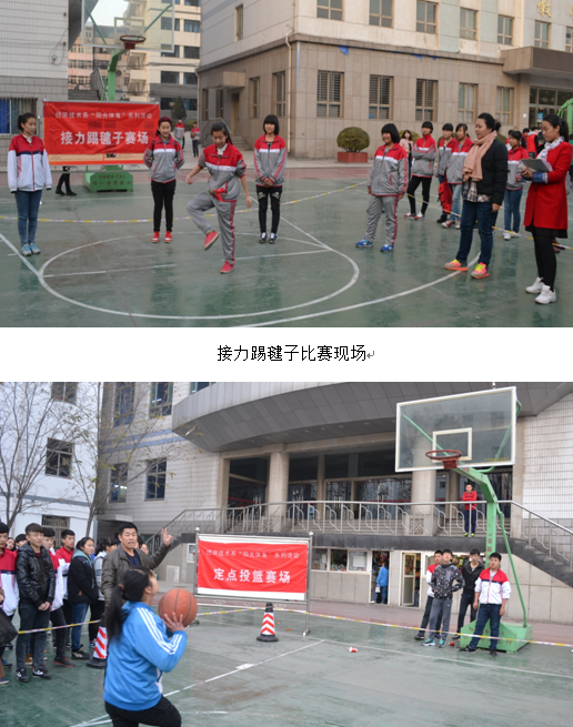为突出 “一切为了学生,健康第一”的服务学生的宗旨,让每一个学生都能感受到运动的快乐,从而丰富校园生活,促进学生身心健康和谐发展,培养同学们公平竞争、热爱和平、追求发展的精神,养成积极主动的体育锻炼习惯,提高同学们的思想道德素质、文明礼仪素质和身体健康素质,我系于2014年11月17日—24日下午4:30—6:00在我校操场进行循环大跳绳、接力跳绳、接力踢毽子、定点投篮的四项 “快乐参与 健康成长”阳光体育系列比赛活动。