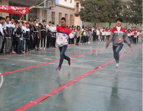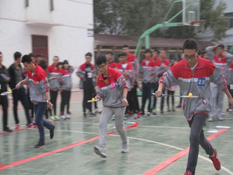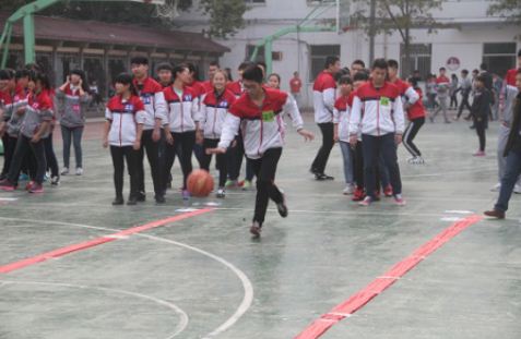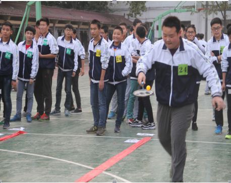 一是比赛项目的确定易于学生操作,器械使用容易掌握,设计了迎面跑接力、迎面单人跳绳接力、迎面运篮球接力、迎面羽乒跑接力四个项目。二是要求每班44名学生参加,占到学生数的90%左右,